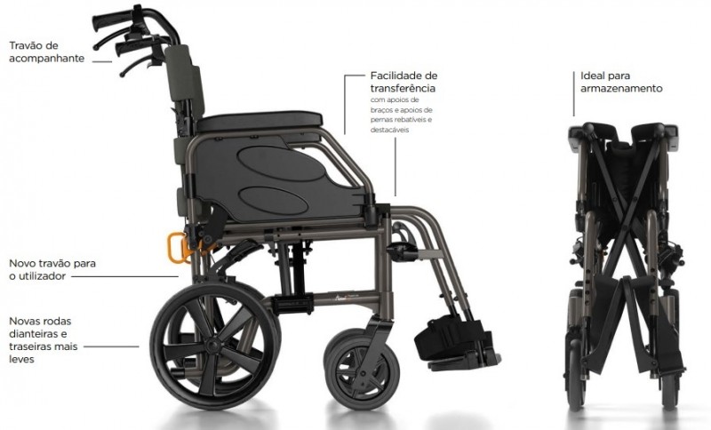 De construção extremamente leve, em alumínio, tornam-se fáceis de manobrar mesmo para pessoas mais idosas ao mesmo tempo que se tornam muito fácil de transportar.